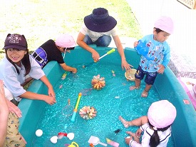 内容:うた・リトミック・体育あそび・製作・知育あそびカードあそび・クッキング・絵本・手遊び・夏まつり会・運動会・消防署見学・クリスマス会・毎月の誕生会など |