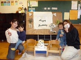 内容:うた・リトミック・体育あそび・製作・知育あそびカードあそび・クッキング・絵本・手遊び・夏まつり会・運動会・消防署見学・クリスマス会・毎月の誕生会など |
