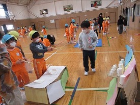 に行き、1年生が授業で作ったおもちゃで遊んできました。的当て、魚釣り、ボーリングなどたくさんのおもちゃがあり、小学生と一緒に楽しい時間を過ごしてきました。