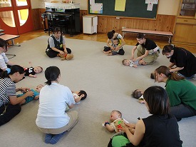 4ヶ月〜1歳6ヶ月のお子さんを対象にたくさんの親子の交流の場を提供しています。 |